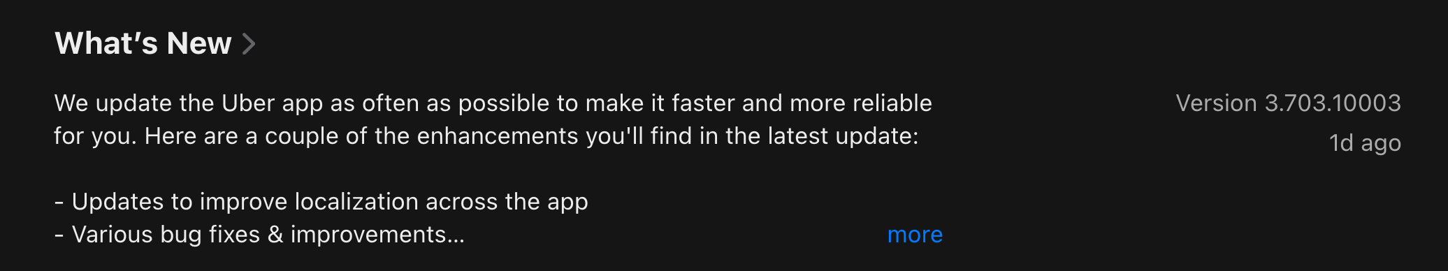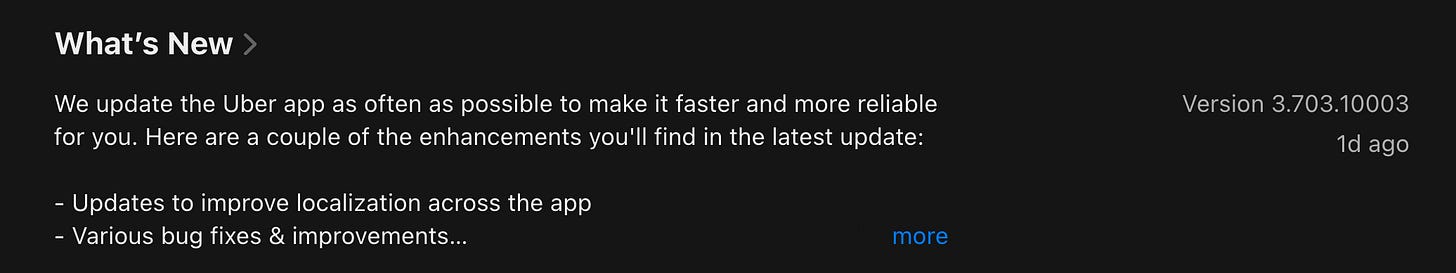 When we implemented it, I also worried that such long version numbers would be a bit scary for users on the app store listing page, but it seems they don’t mind. On my side, I’m still a bit worried when I see Uber’s super long version number: