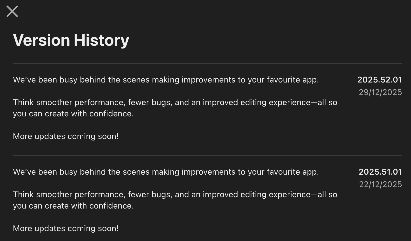 At Photoroom, we used to increment the major version number on big releases to celebrate. Recently, however, we moved our mobile apps to a versioning scheme like like 2025.51.01 (so [year].[weekNumber].[iteration])