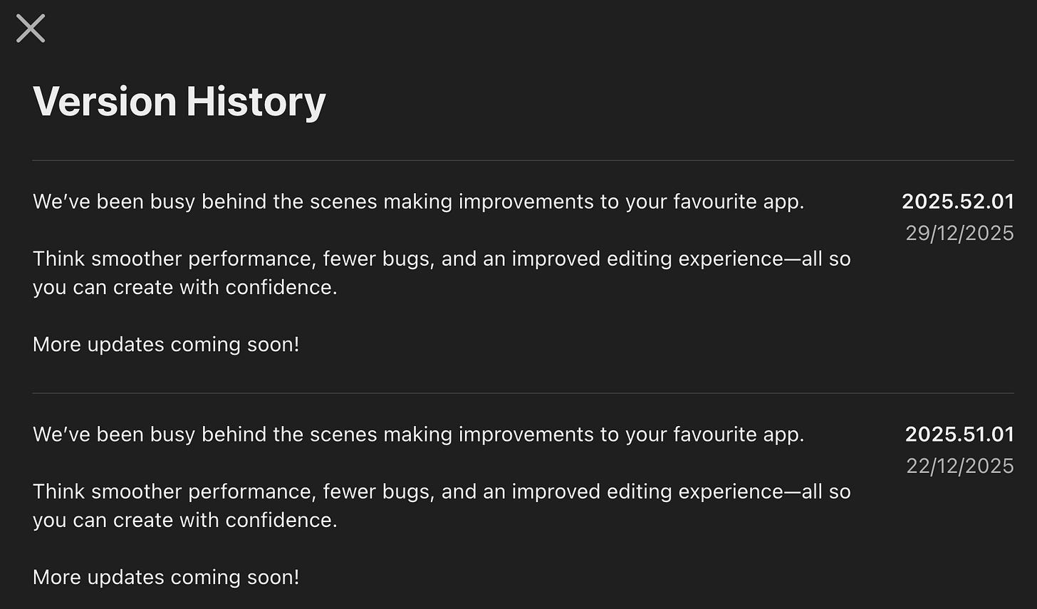 It’s also quite useful to understand version distribution. You can see below that most users on iOS are on version 2025.50.03 (meaning the third iteration of the 50th week of the year) and are progressively upgrading to 2025.51.01:
